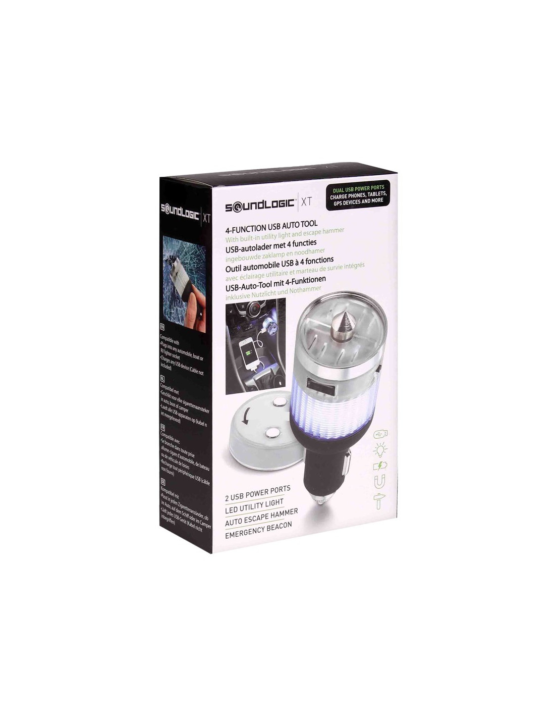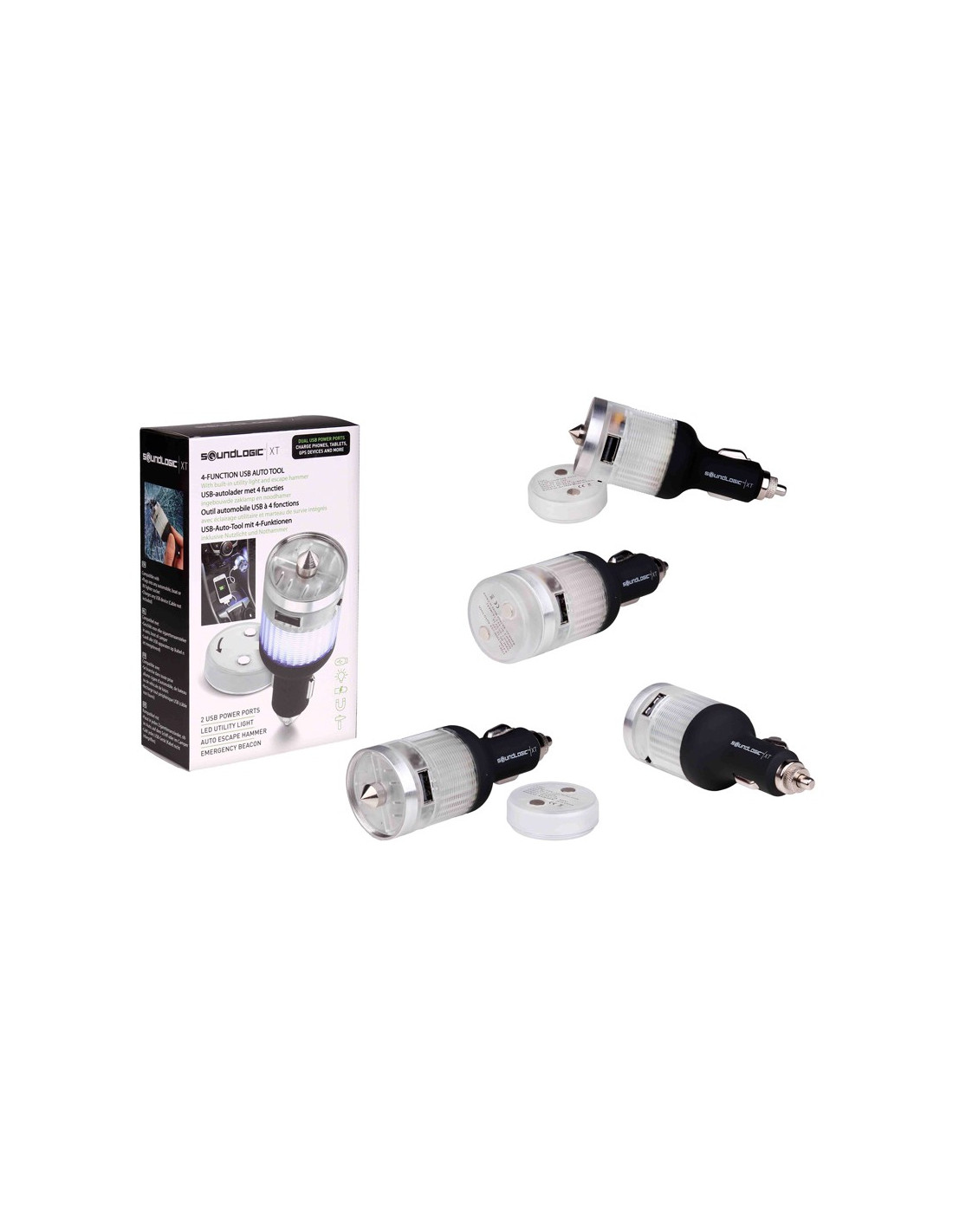 - Door de magnetische dop te verwijderen komt een ontsnappingshamer tevoorschijn om het glas van de autoruit in te slaan.