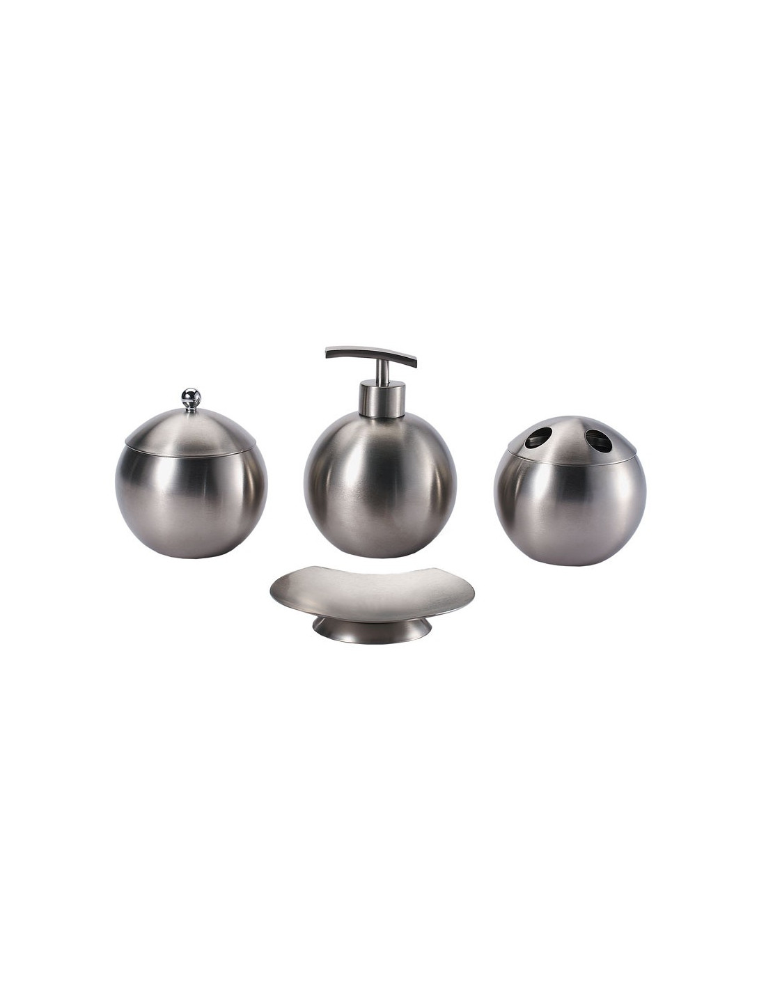 De set bestaat uit vier essentiële items die uw badkamerorganisatie verbeteren en tegelijkertijd een verfijnde uitstraling bieden. De zeepschaal (afmetingen: 12,5x10x2,5 cm) is perfect voor het netjes bewaren van uw zeep en voorkomt dat deze wegglippen. De wattenschijfjespot met deksel (doorsnede: 10,4 cm, hoogte: 11,2 cm) houdt uw wattenschijfjes schoon en binnen handbereik.