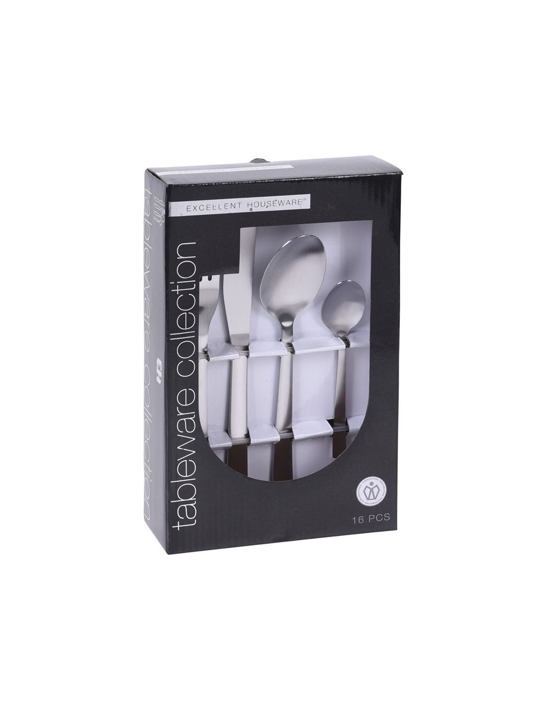 materiaal: RVS kleur: zilver 4-persoons bestekset totaal:16 stuks bestek 4 messen 4 vorken 4 eetlepels 4 theelepels