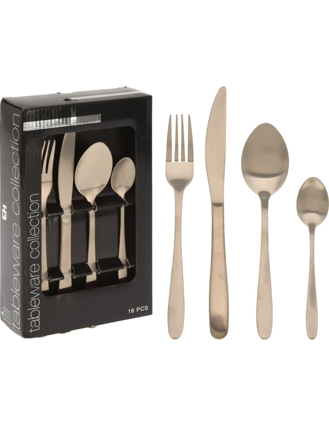 16 delige bestekset stainless steel 430 2.0mm dik mat goud geschikt voor de vaatwasser, echter handwas aanbevolen