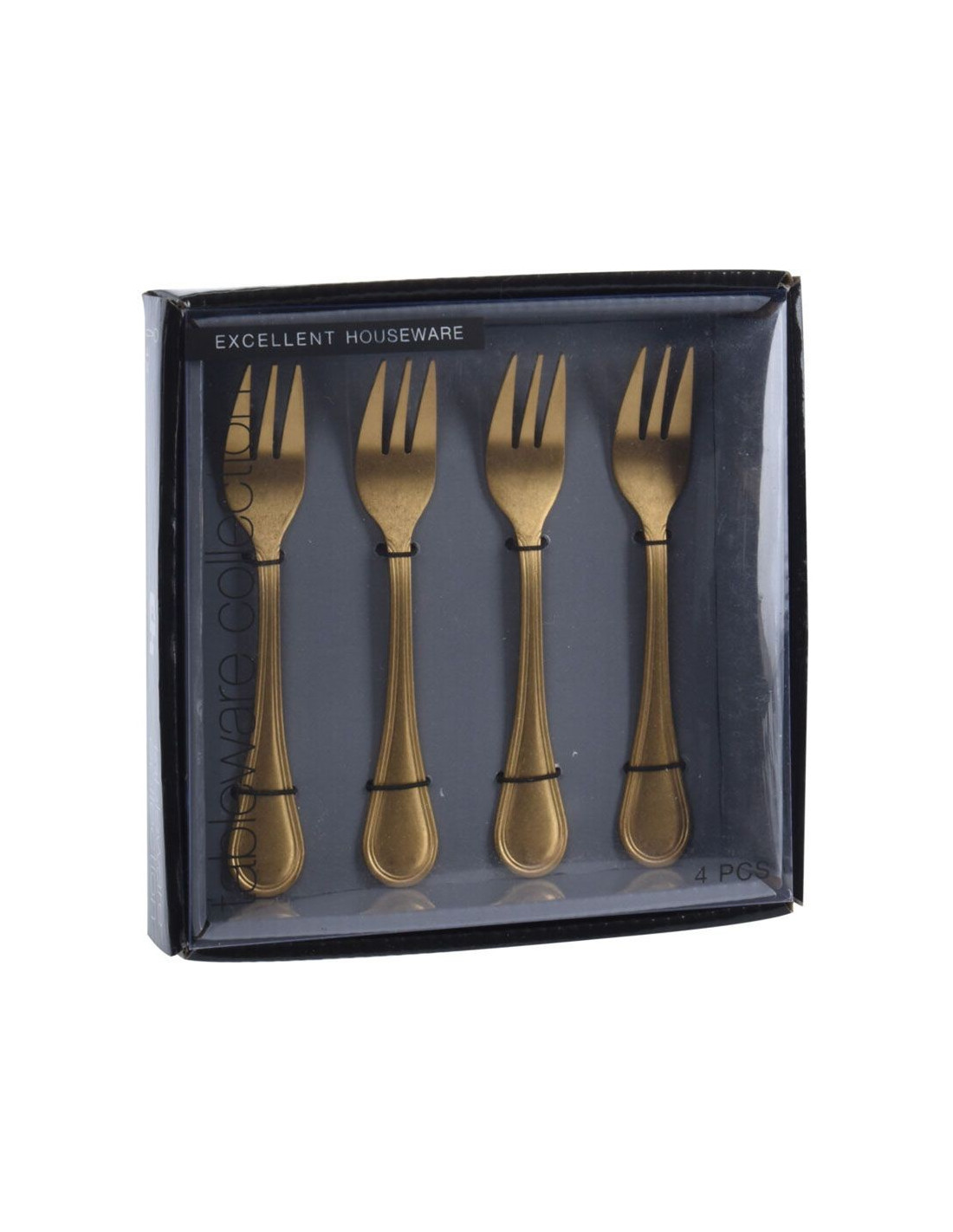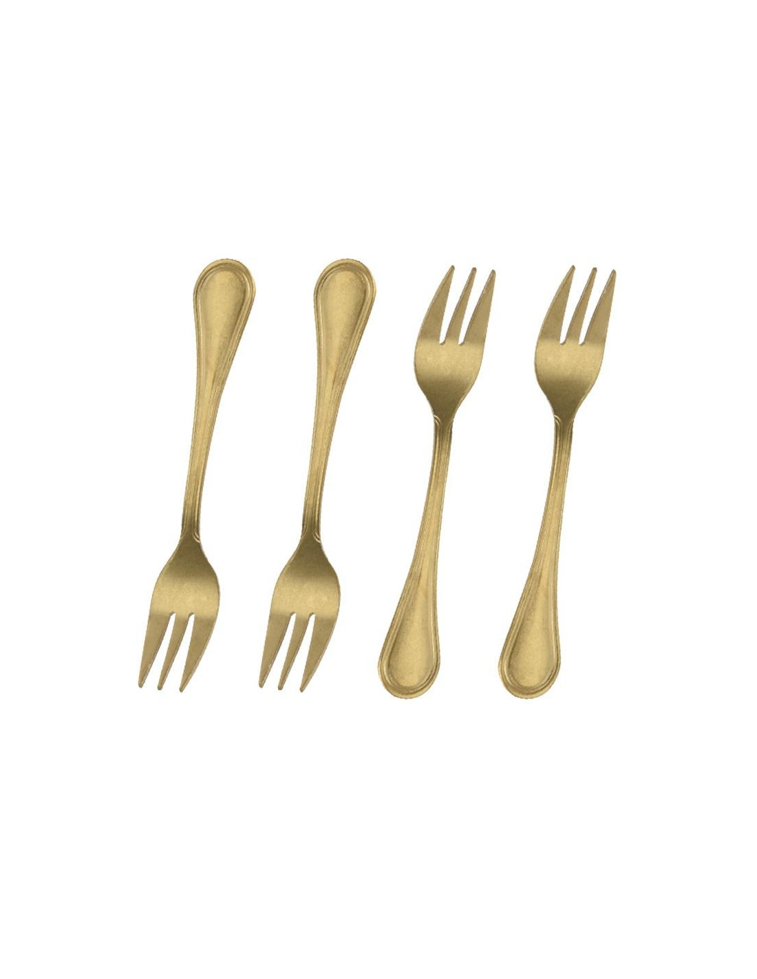set van 4 gebaksvorkjes roestvrij staal 1.8mm antique finish stone polished gold niet geschikt voor de vaatwasser