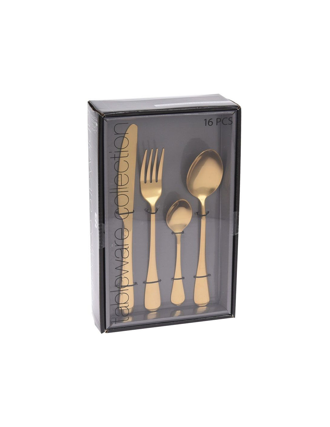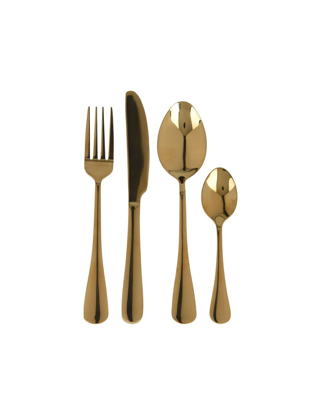 RVS met gold mirror polish kleur: goud 4-persoons bestekset 16 stuks bestek totaal 4x messen 4x vorken 4x eetlepels 4x theelepels geschikt voor in de vaatwasser