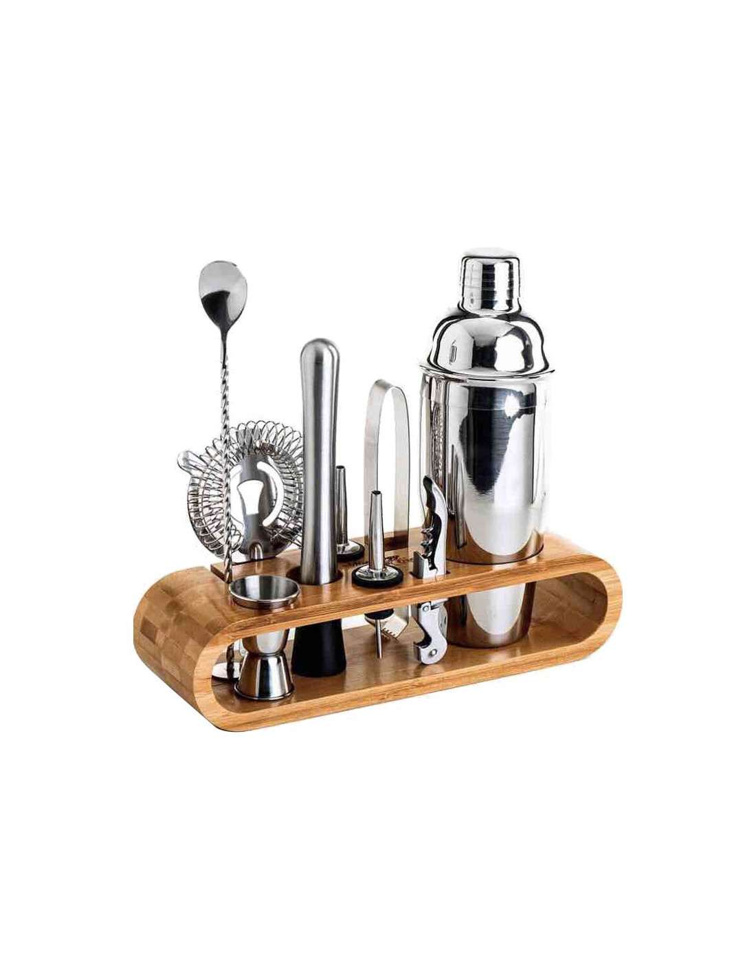 roestvrijstaal, 304 stainless steel luxe bamboe standaard shakebeker met dop: 750 ml opener, kurkentrekker cocktail zeef cocktail maatbeker (dubbelzijdig) stamper ijstang roerlepel schenktuit, 2x merk: Ceruzo