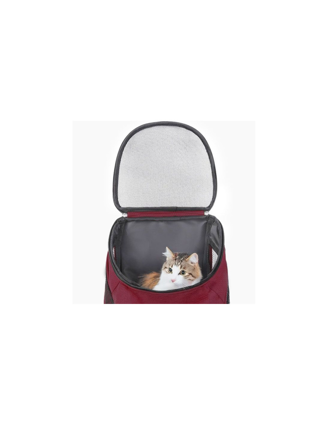 afmeting: 26 (diepte) x 33 (breedte) x 40 cm (hoogte) draagvermogen: max. 10 kg. geschikt voor: katten en honden materiaal: nylon en polyester opening: aan bovenzijde lucht doorlatend (mesh) 2 opbergvakken aan de zijkanten verstelbare banden verwisselbare - uitneembare bodem kleur: rood merk: Ceruzo
