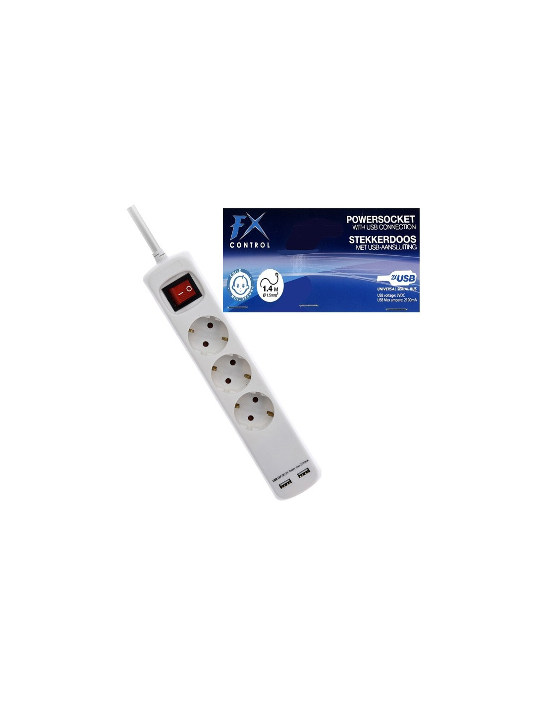 Stekkerdoos 3V - RA - 2x USB - 1.40m - 3x1.5mm