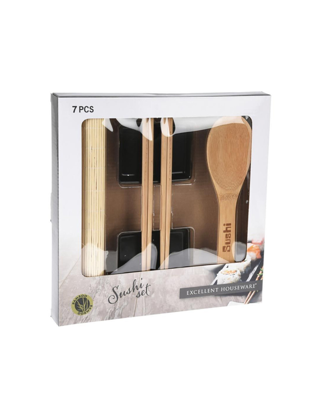 Onze sushi set bestaat uit zeven onderdelen: twee keramische bordjes met een afmeting van 10 bij 8 centimeter, ideaal voor het presenteren van sushi of sashimi. De bordjes zijn gemaakt van hoogwaardig keramiek, bekend om zijn duurzaamheid en elegante uitstraling. De natuurlijke bamboe elementen van de set, waaronder een sushilepel, twee placemats en twee sets eetstokjes, voegen een organische touch toe en benadrukken de traditionele Japanse eetcultuur.