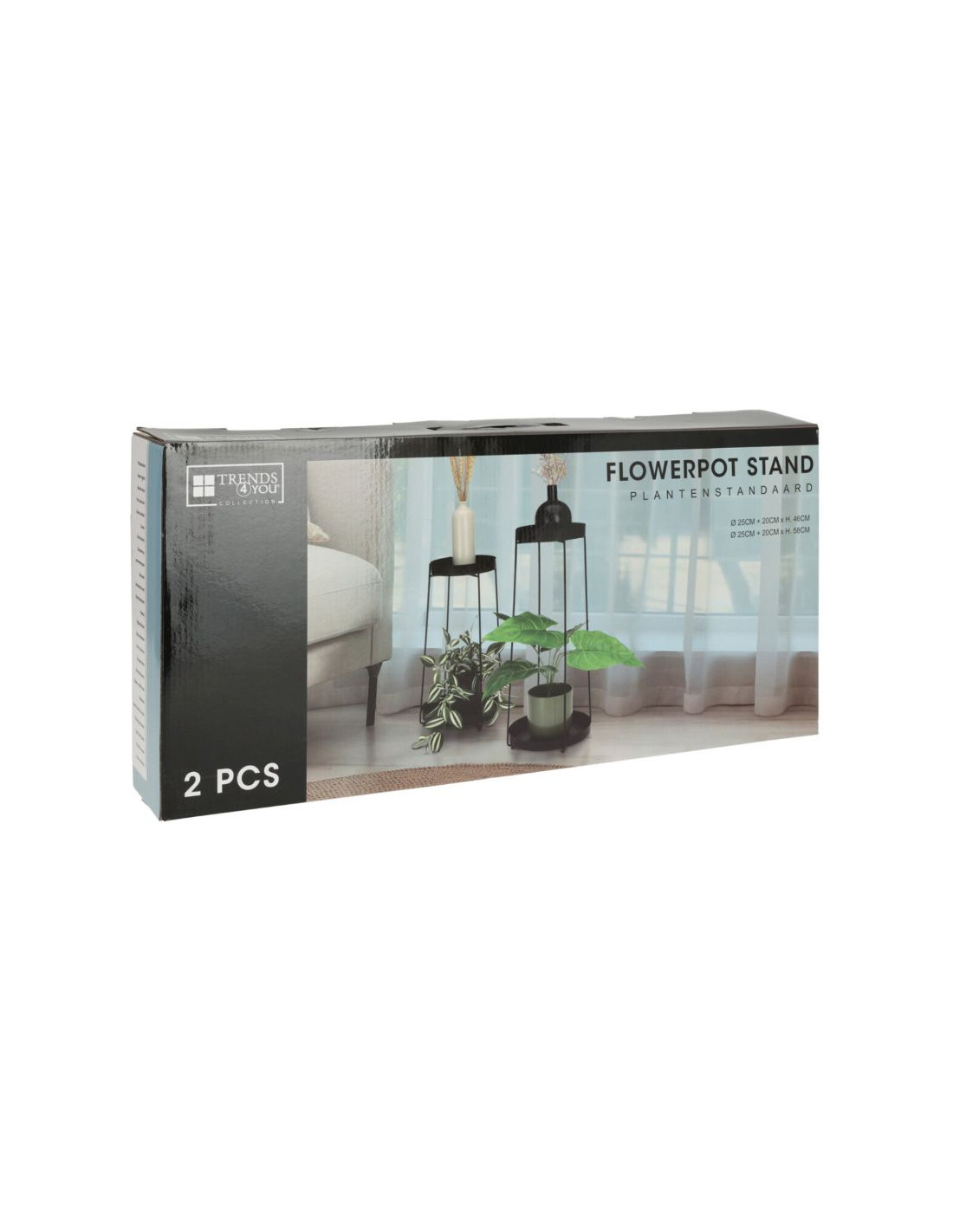 Plantenstandaard - 46 + 58 cm hoogte - zwart - set van 2