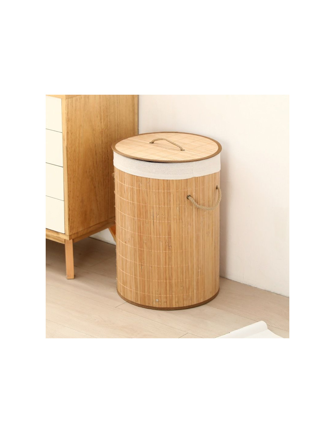 Ceruzo Wasmand met Deksel - Bamboe - Rond - 48 Liter