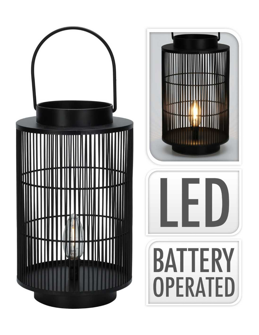 met LED lamp materiaal: metaal afmeting: 18 x 18 x H30 cm kleur: zwart werkt op 3x AAA batterij (niet meegeleverd)