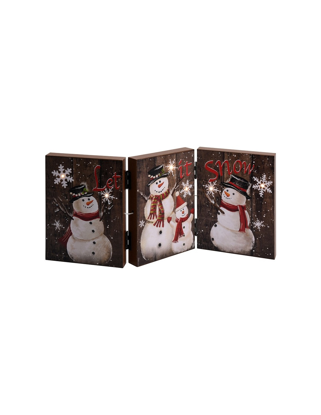 Houten Winter Decoratie: "Let it snow" Drieluik met LED-verlichting