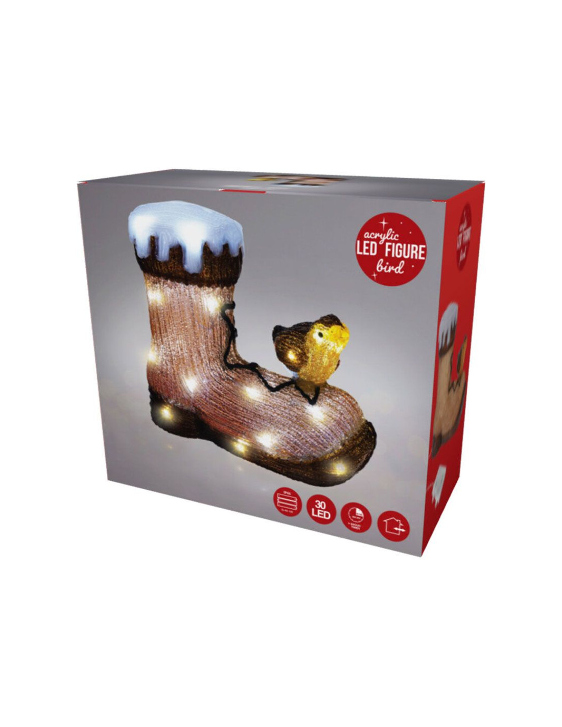 Kerstfiguur Acryl - Vogel op Laars - LED - 28cm