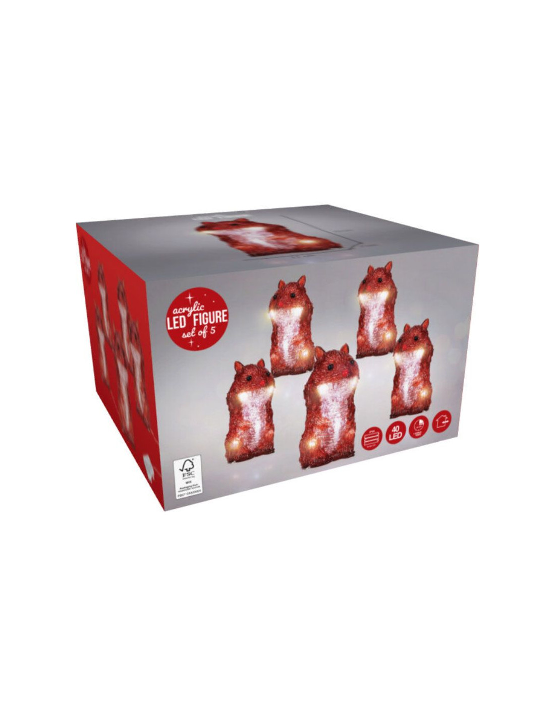 Kerstfiguur Acryl - Eekhoorns - LED - set van 5