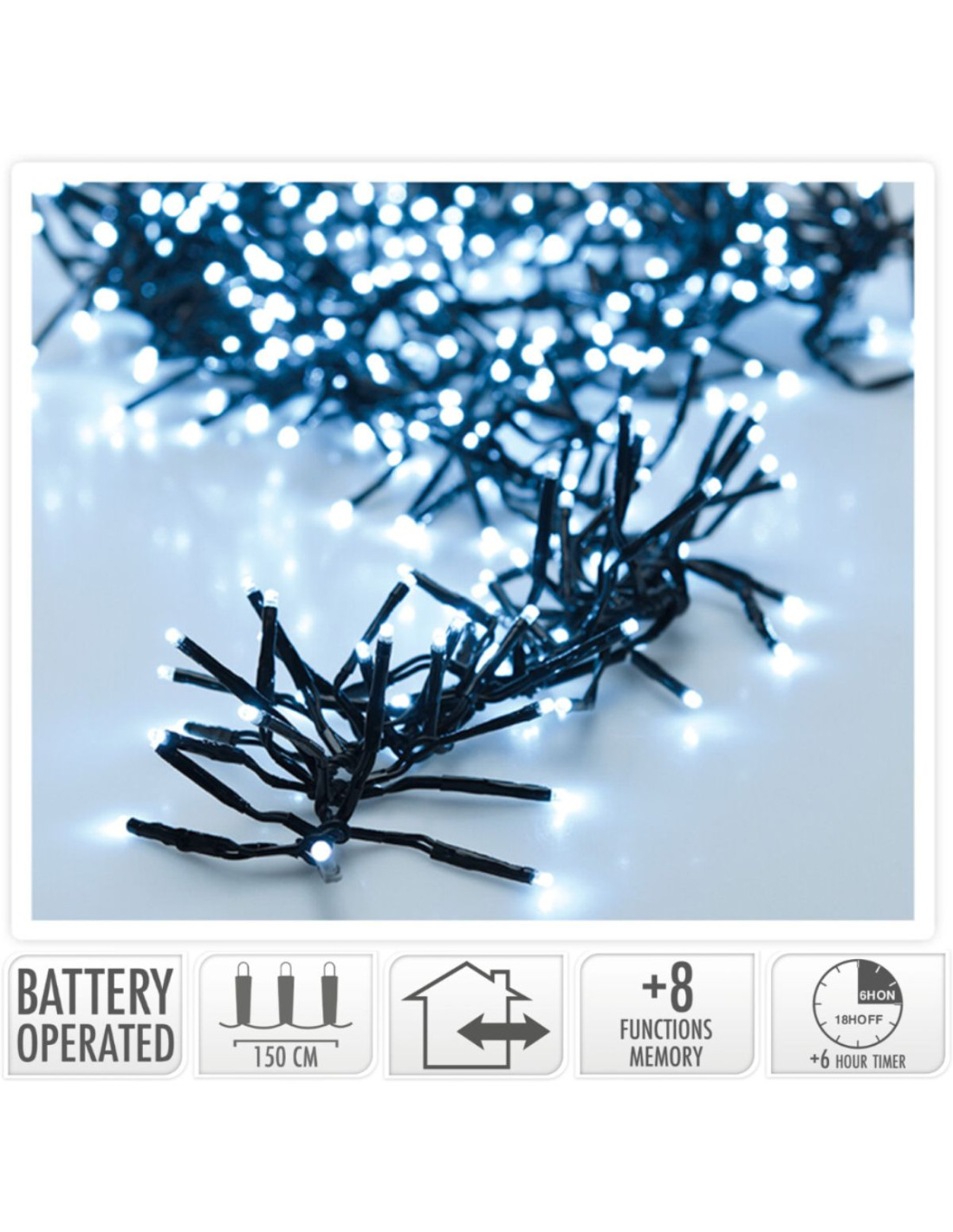 Clusterverlichting 192 led - 1.4m - wit - Batterij - Lichtfuncties - Geheugen - Timer