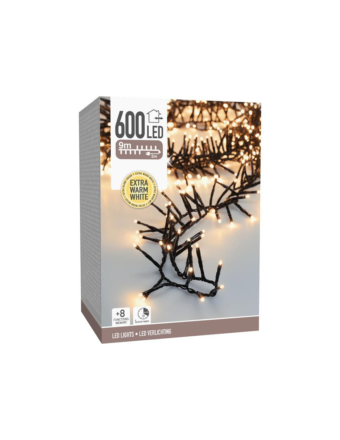 Maxi Cluster Kerstverlichting - 600 led - 9m - extra warm wit - Timer - Lichtfuncties - Geheugen - Buiten