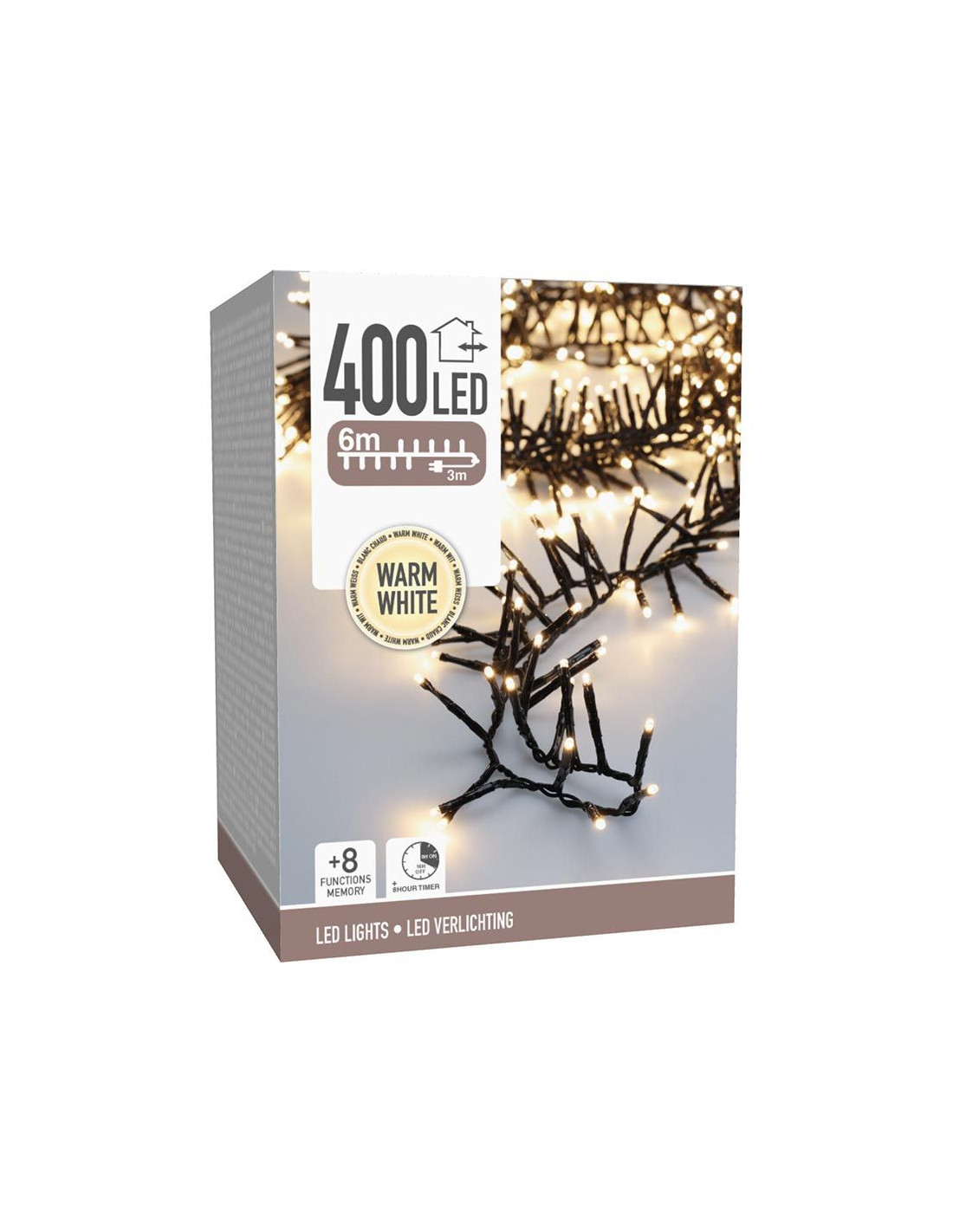 Maxi Cluster Kerstverlichting - 400 led - 6m - warm wit - Timer - Lichtfuncties - Geheugen - Buiten
