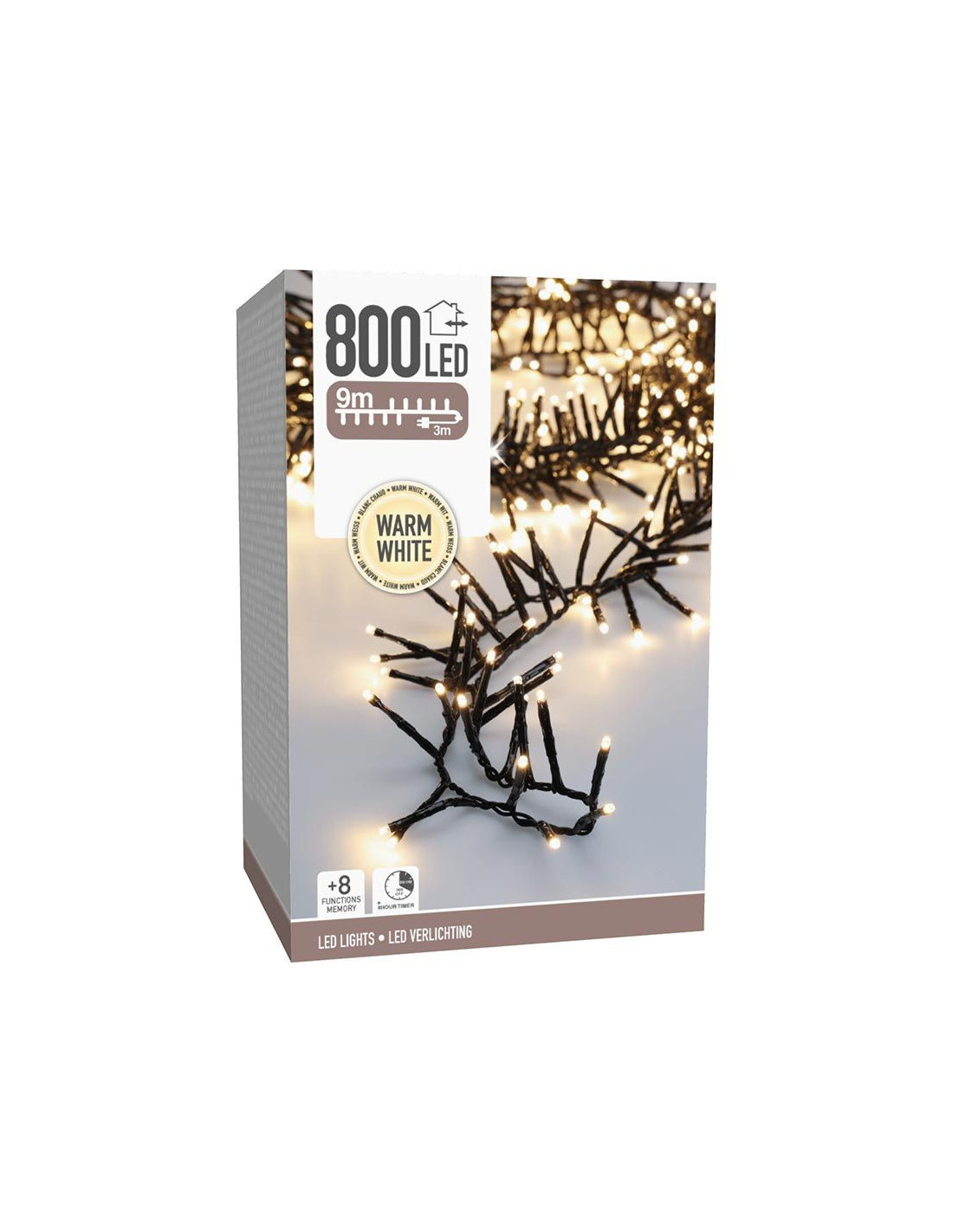 Maxi Cluster Kerstverlichting - 800 led - 12m - warm wit - Timer - Lichtfuncties - Geheugen - Buiten