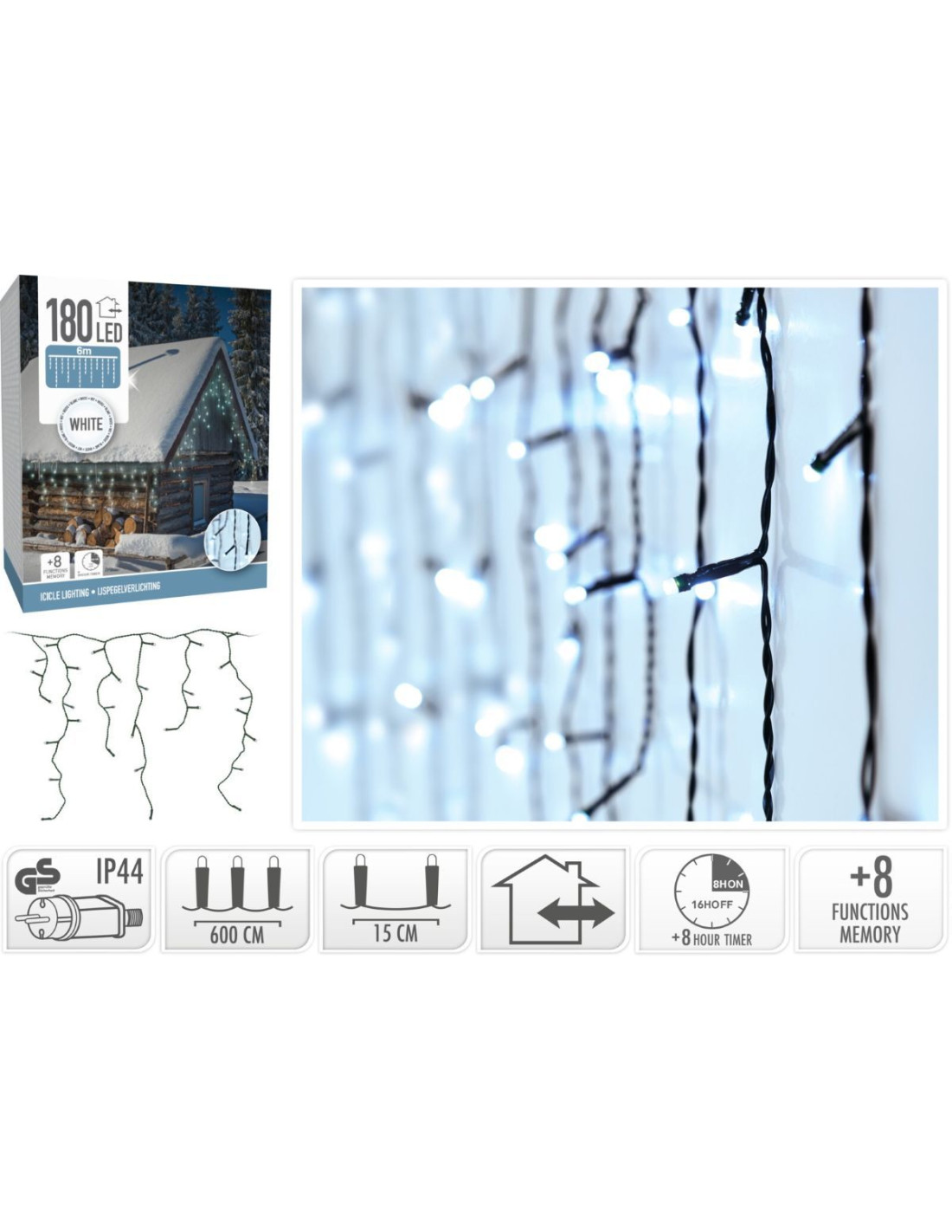 IJspegel verlichting - 180 LED - Wit - Timer - Lichtfuncties - Geheugen