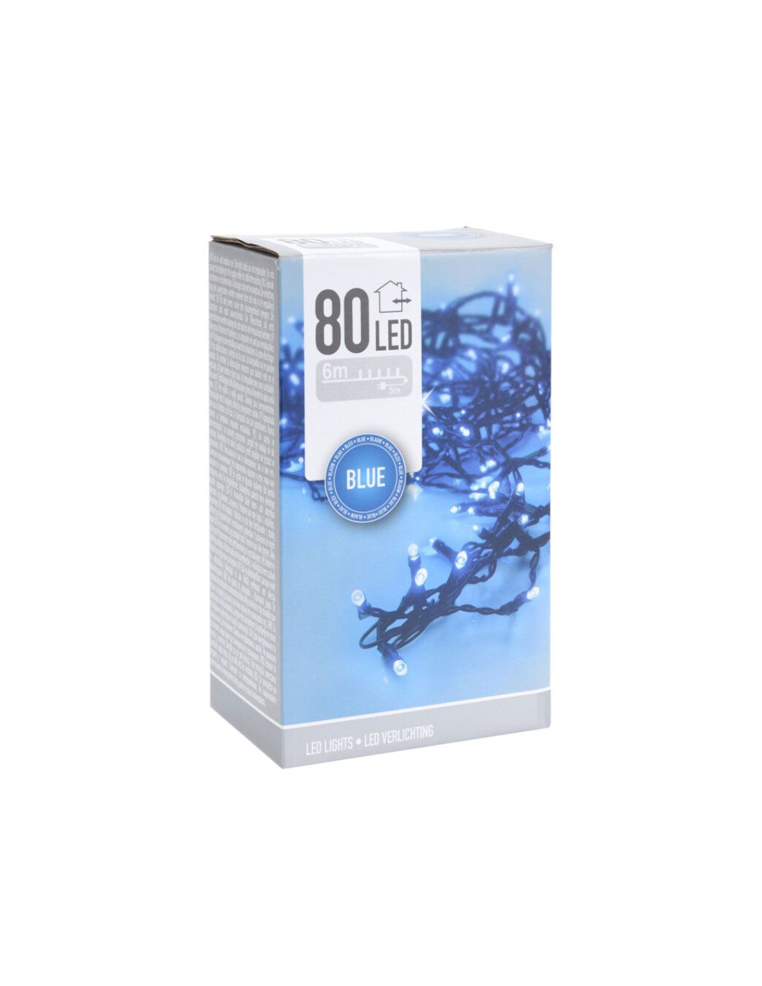 LED Lichtsnoer 6 meter, 80 lampjes, voor binnen en buiten Aantal LED's: 80 Afstand tussen LED's: 7.5 cm Lengte aanloopsnoer: 3 meter Lengte lichtsnoer: ca. 6 meter Lengte totaal: ca. 9 meter Kleur LED: baluw Kleur snoer: groen Met adapter (beschermwaarde IP44) Geschikt voor binnen en buiten Verbruik: 1.1W