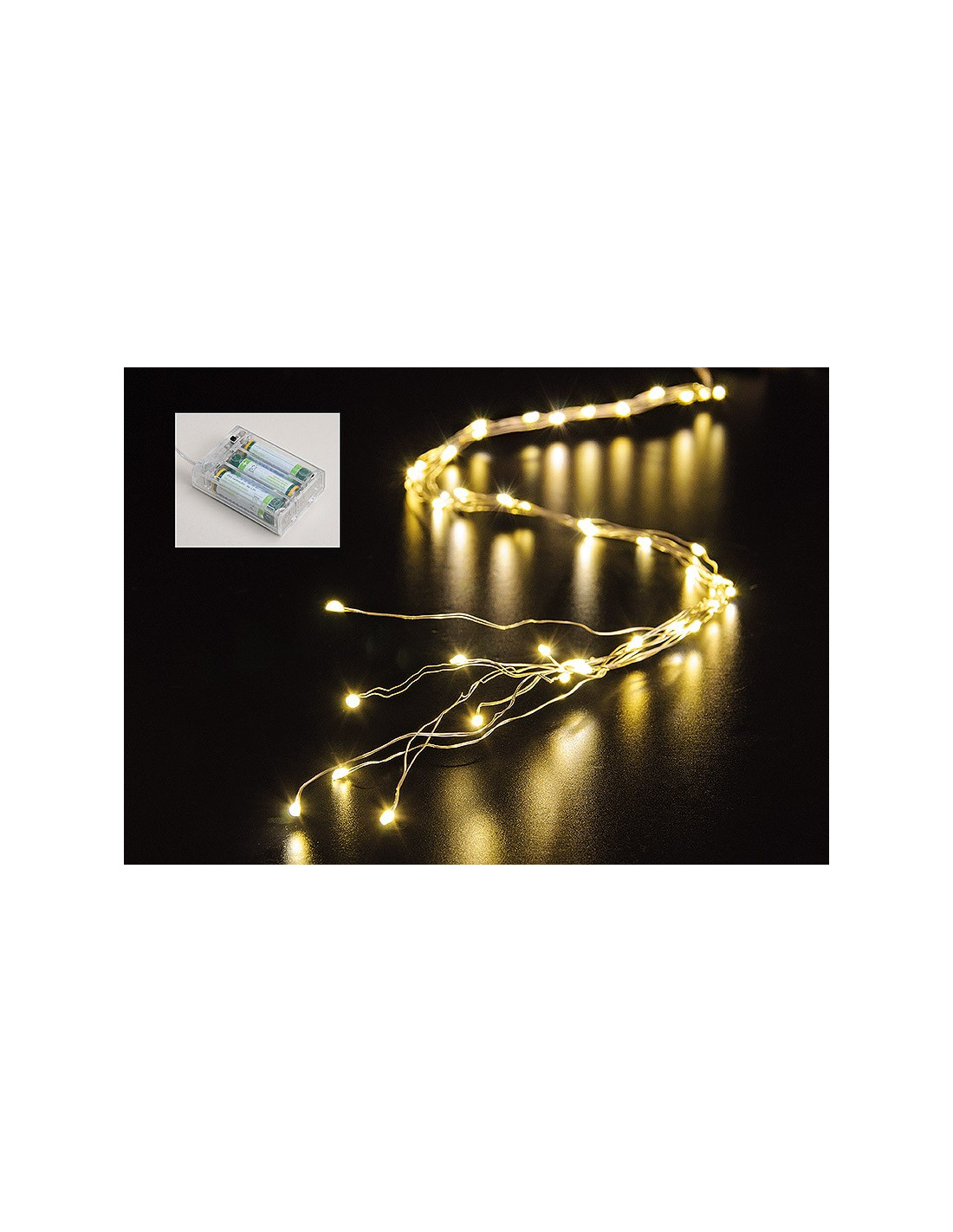 LED Lichtdraad van 50 cm met 40 heldere LED’s, ideaal voor sfeervolle binnenverlichting. Voorzien van 8 vertakkingen en gemakkelijk te plaatsen dankzij batterijvoeding (3xAA, niet inbegrepen). Voeg een speciaal tintje toe aan uw decor met deze energiezuinige verlichting.