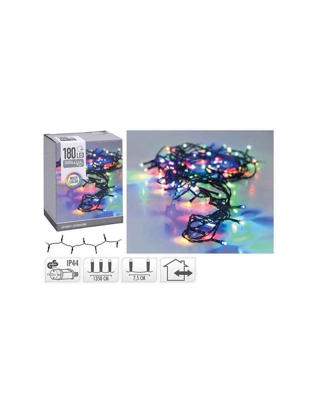 Creëer een betoverende sfeer met ons multicolor LED-lichtsnoer van 13.5 meter met 180 levendige LED's. Geschikt voor binnen en buiten, dit veelzijdige lichtsnoer voegt een feestelijke touch toe aan elke gelegenheid. Met een groen snoer en IP44-bescherming is het perfect voor elk seizoen.