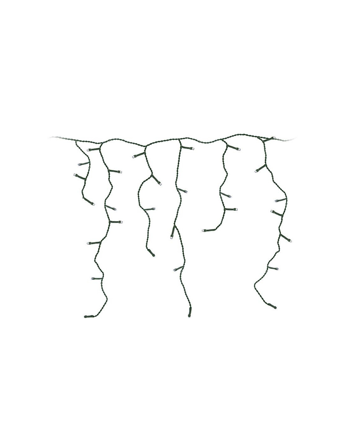 LED-IJspegel 90 lampjes LED's, 3 meter, voor binnen en buiten Een fraai lichtgordijn voor binnen en buiten met maar liefst 90 LED's Korte en lange strengen wisselen elkaar af zodat er een prachtig lichtgordijn ontstaat Ideaal om voor het raam of langs de muur te hangen De kleur van de LED's is wit De breedte van het lichtgordijn is 3 meter De lengte van de langste strengen is 52 cm Het aansluitsnoer is 3 meter lang Wordt geleverd met IP44 adapter, dus ook geschikt voor buiten Verbruik 3.6W 3V, 15mA