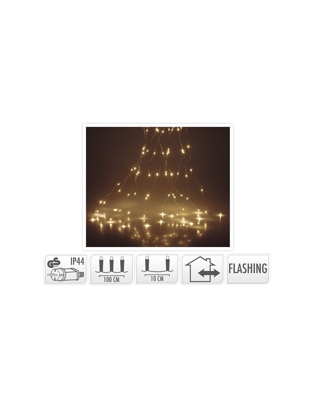 Cascadeverlichting is de ideale hangende verlichting voor in je kerstboom. De zilverdraad bestaat uit 10 buigzame draden met elk 10 led's. Doordat er enkele led's zacht knipperen, ontstaat het watervaleffect. De draadverlichting is perfect om over je kerstboom heen te hangen, maar kan ook gebruikt worden voor het decoreren. cascadeverlichting met vuurvliegjeseffect (watervaleffect) kleur led: warm wit aantal led’s: 100, inlcusief 20 led's met vuurvliegjeseffect aantal lichtsnoeren: 10 lengte per lichtsnoer: 100 cm lengte aanloopsnoer: 5 meter afstand tussen LED's: 10 cm kleur snoer: transparant / zilverkleurig met haakje om op te hangen met adapter (beschermwaarde IP44) geschikt voor binnen en buiten verbruik: 0.9W 220-240V, 50-60Hz 3V/ 15mA gewicht: 177gram