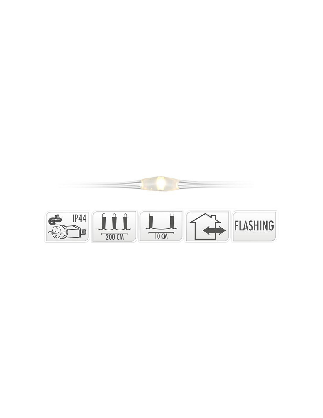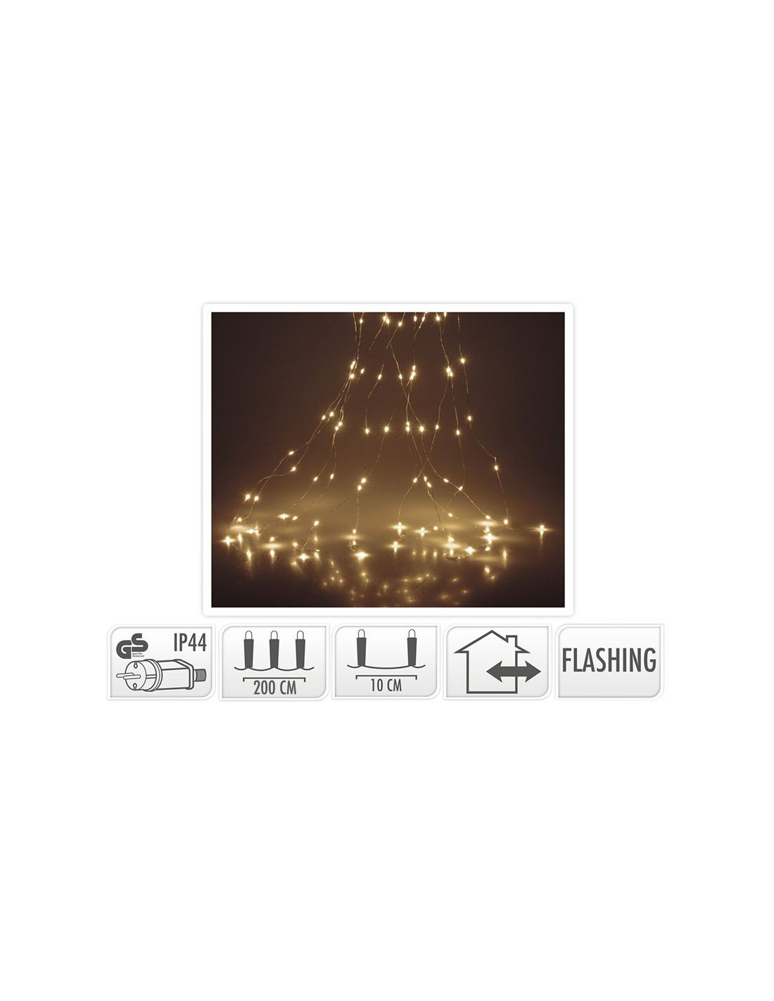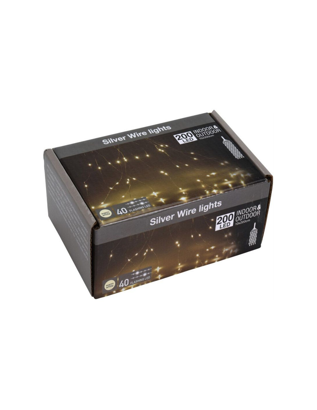 Cascadeverlichting is de ideale hangende verlichting voor in je kerstboom. De zilverdraad bestaat uit 10 buigzame draden met elk 20 led's. Doordat er enkele led's zacht knipperen, ontstaat het watervaleffect. De draadverlichting is perfect om over je kerstboom heen te hangen, maar kan ook gebruikt worden voor het decoreren. cascadeverlichting met vuurvliegjeseffect (watervaleffect) kleur led: warm wit aantal led’s: 200, inlcusief 40 led's met vuurvliegjeseffect aantal lichtsnoeren: 10 lengte per lichtsnoer: 200 cm lengte aanloopsnoer: 5 meter afstand tussen LED's: 10 cm kleur snoer: transparant / zilverkleurig met haakje om op te hangen met adapter (beschermwaarde IP44) geschikt voor binnen en buiten verbruik: 1.35W 220-240V, 50-60Hz 3V/ 15mA gewicht: 218 gram