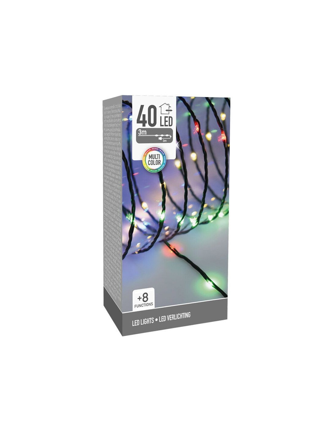 Met deze soft wire draadverlichting breng jij de kerstsferen in huis. Deze verlichting heeft een zachte kleurtoon, waardoor de LED's voor een warme sfeer in huis zorgen. De draadverlichting is buigzaam en spatwaterdicht. Hierdoor zijn de soft led's ideaal om te gebruiken als decoratie in een vaas, kerststukje of andere creatieve kerstversiering voor binnen of buiten. soft wire draadverlichting kleur LED: multicolor aantal LED’s: 40 lengte lichtsnoer: 3 meter lengte aanloopsnoer: 3 meter afstand tussen LED's: 7,5 cm kleur snoer: groen 8 lichtfuncties met adapter (beschermwaarde IP44) geschikt voor binnen en buiten energiezuinig: 3.6W 180-240V, 50Hz 3,2V/ 20mA