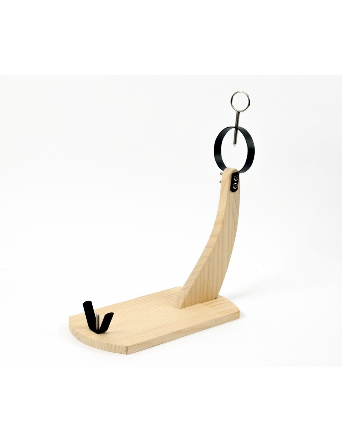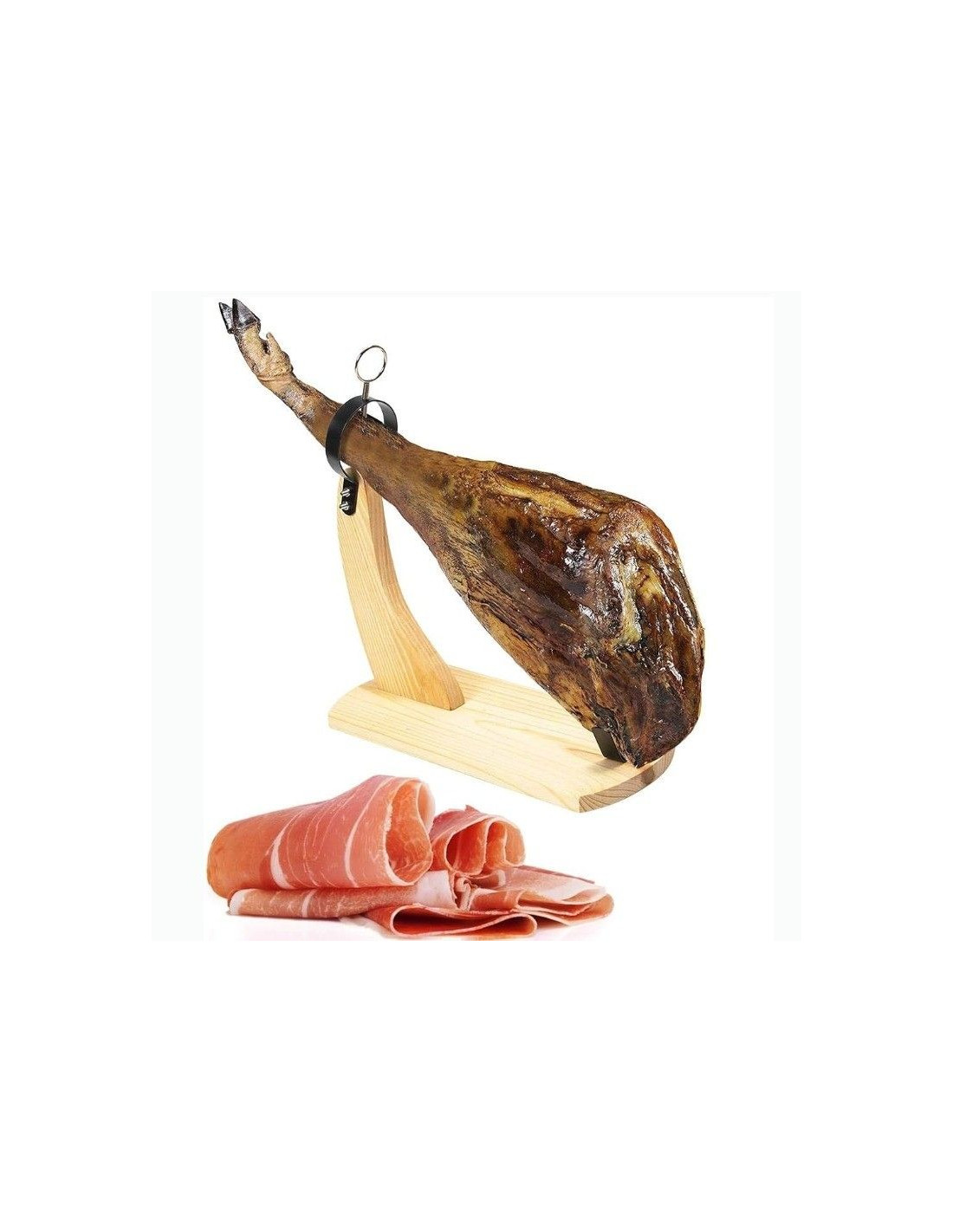 praktische hamhouder voor spaanse ham geschikt voor hammen van ca. 4 tot 9 kg materiaal: grenen hout en metaal afmeting: 40 x 19 x H36 cm montagetijd: 2 minuten merk: Ceruzo