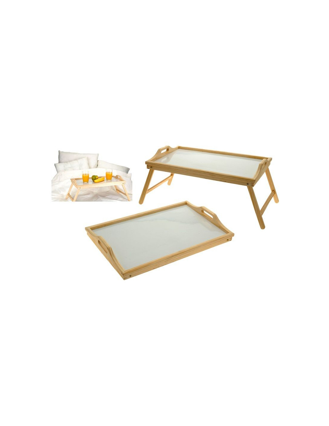 Genieten van een ontbijtje op bed? Hier is je oplossing! uitklapbaar dienblad van blank grenenhout binnenblad is van wit lakboard. 50 x 30 x H24cm.