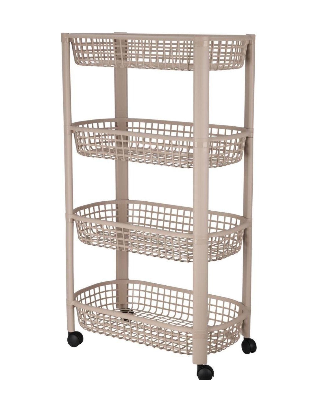 verrijdbaar, 4 wieltjes 4 lagen, manden 46.5 x 26 79 cm kunststof (PP) beige montagetijd: 5 minuten