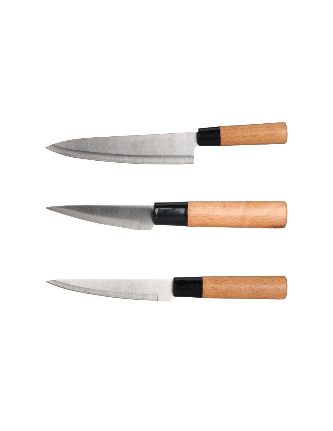 Koksmes (33 cm): Dit veelzijdige mes is ideaal voor het snijden van vlees, groenten, en kruiden. Het RVS mes met bamboe handvat ligt comfortabel in de hand.