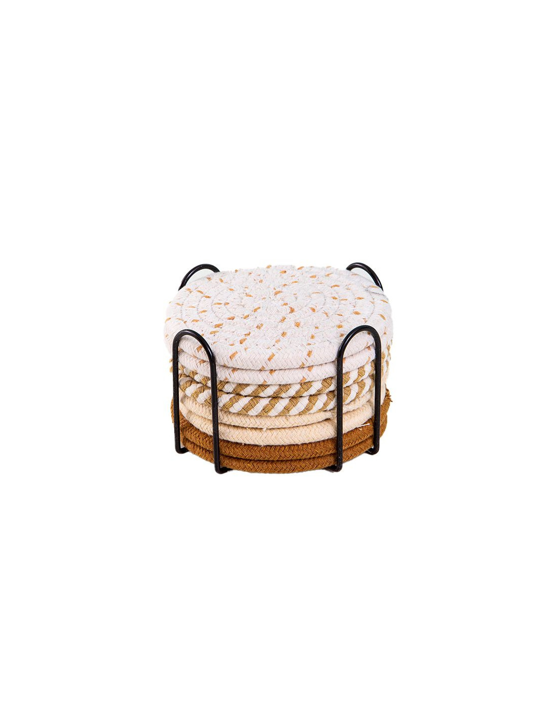 Ceruzo Onderzetters met Houder - Set van 8 - Creme