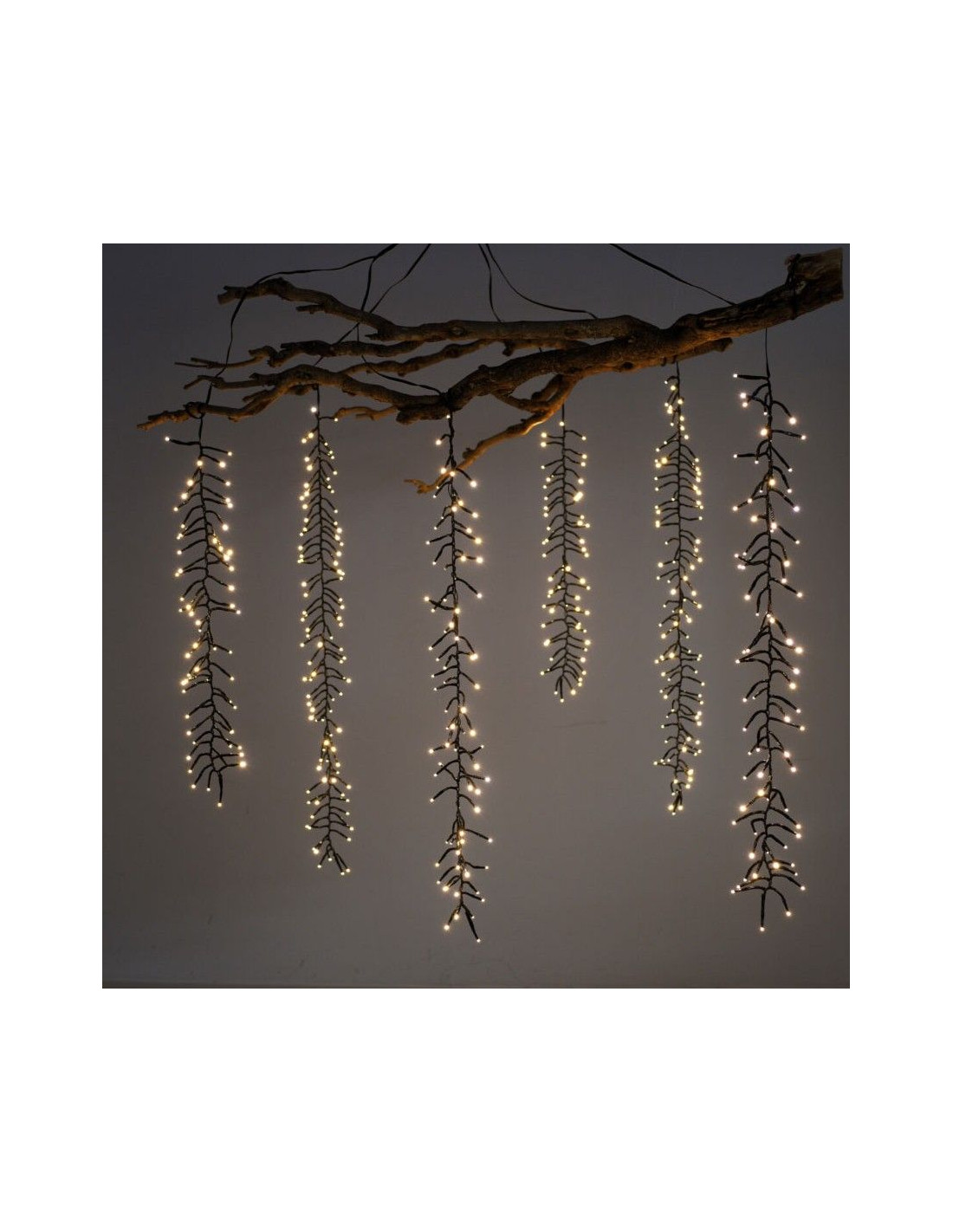 clusterverlichting met cascade sturctuur waarbij de lampjes naar beneden hangen vanuit 1 centraal punt in het snoer 6 cascadestrengen met elk 80 led's totaal aantel led: 480 kleur: warm wit lengte van de strengen: van 60 tot 100 cm lengte van de takjes: 5 cm controller met 8 lichteffecten met geheugen: onthoudt de laatst gekozen lichtinstelling automatische timer: 8 uur aan, 16 uur uit aansluitsnoer: 10 meter IP44 adapter, voor binnen en buiten vermogen: 6W