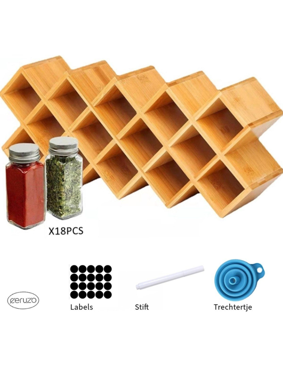 Ceruzo Kruidenrek met 18 Glazen kruidenpotjes - met Labels en Stift