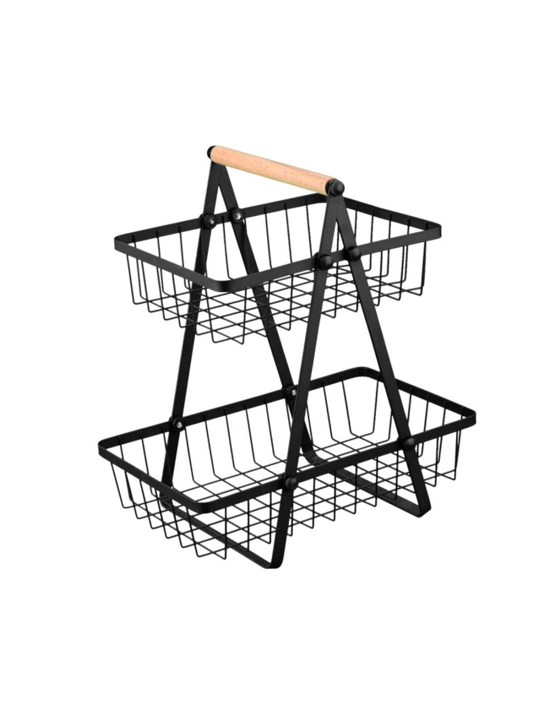 fruitmand, etagere 2 manden: 27 x 18 en 21 x 18 cm hoogte: 43.5 cm materiaal: metaal en hout kleur: zwart montagetijd: 5 minuten merk: Ceruzo