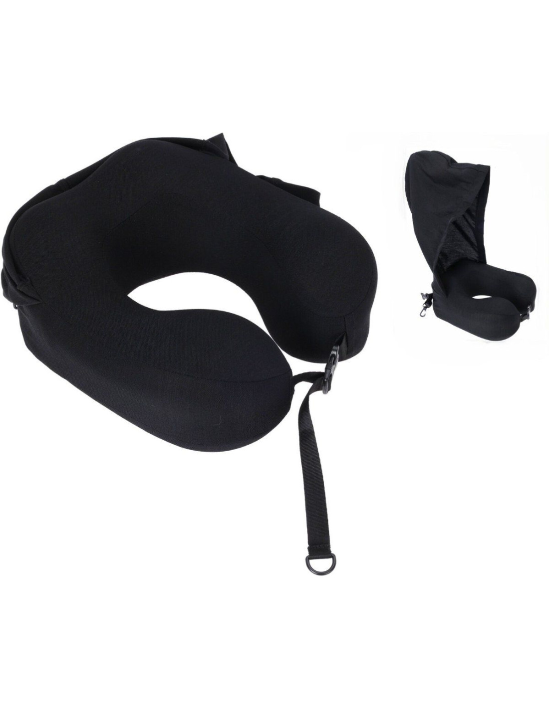nekkussen voor onderweg met capuchon makkelijk op te rollen wasbaar materiaal: polyester afmeting: 25 x 22 x 12 cm kleur: zwart gewicht: 295 gram