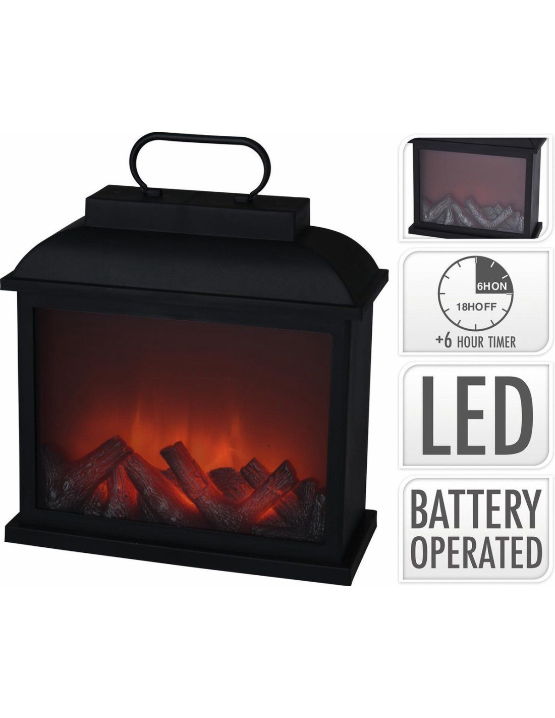 lantaarn Led openhaard kunststof frame 30 x 13 x H30 cm 4 led's timer werkt op batterijen, niet meegeleverd (3x C)