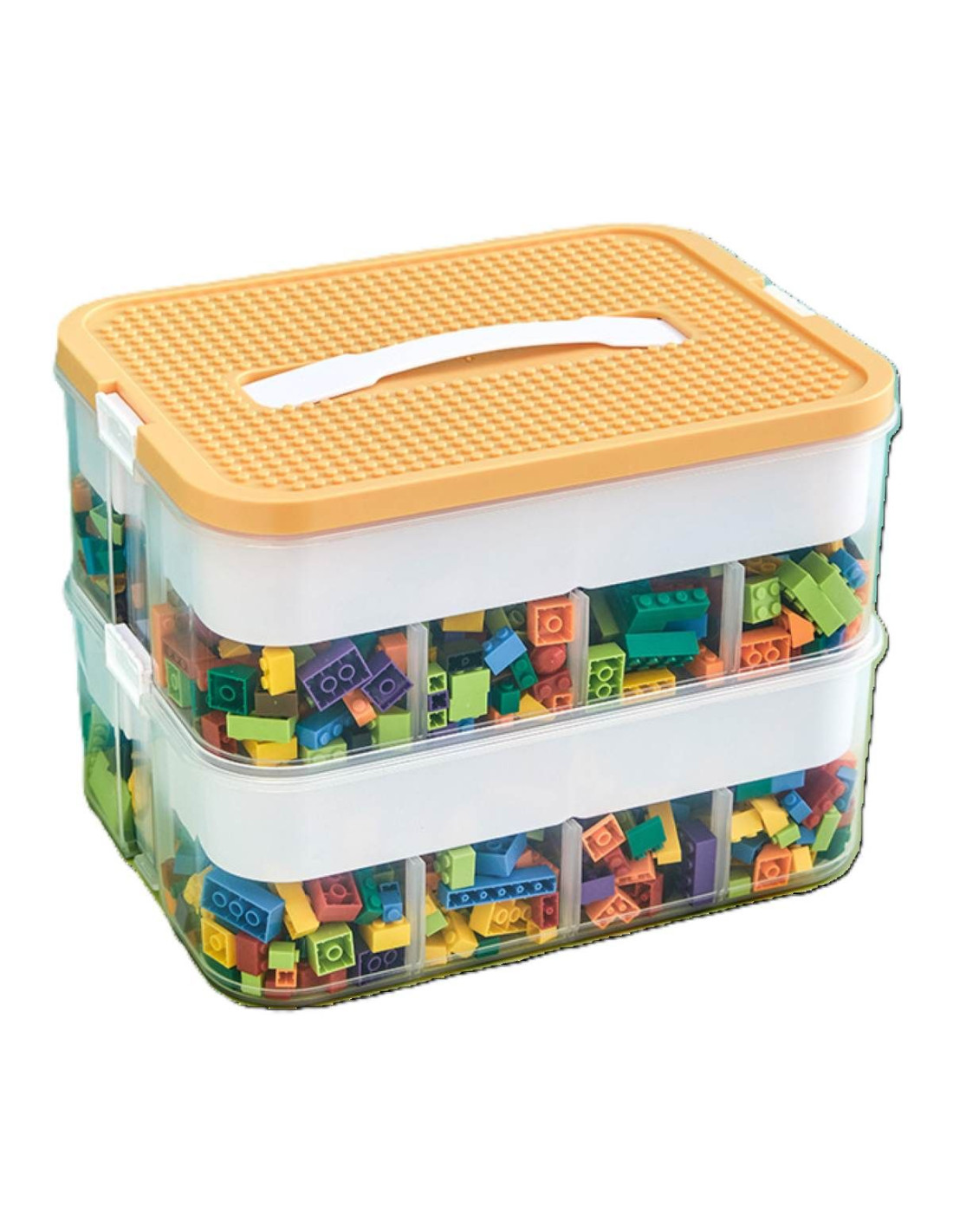 geschikt voor bouwsteentjes, creatief speelgoed en bv handwerkbenodigdheden inzetbakken en verstelbare verdelers kunststof met afgeronde hoeken stevige kliksluitingen 30.5 x 23 x H23 cm twee lagen modulair stapelbaar transparante wanden woprdt geleverd zonder speelgoedblokjes merk: Ceruzo