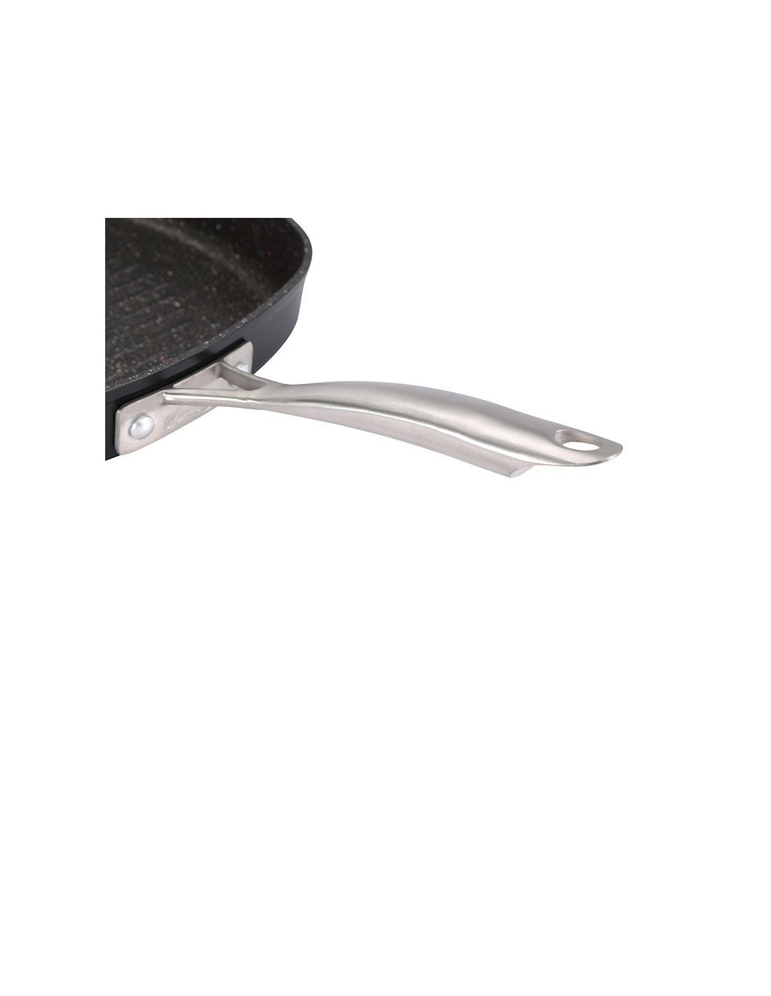 Gemaakt van hoogwaardig gesmeed aluminium, garandeert de pan uitstekende warmtegeleiding en duurzaamheid. De RVS handgreep zorgt niet alleen voor een moderne uitstraling, maar ook voor een stevige grip tijdens het koken. Geschikt voor alle warmtebronnen, inclusief inductie, past deze pan zich aan elke keukenomgeving aan.
