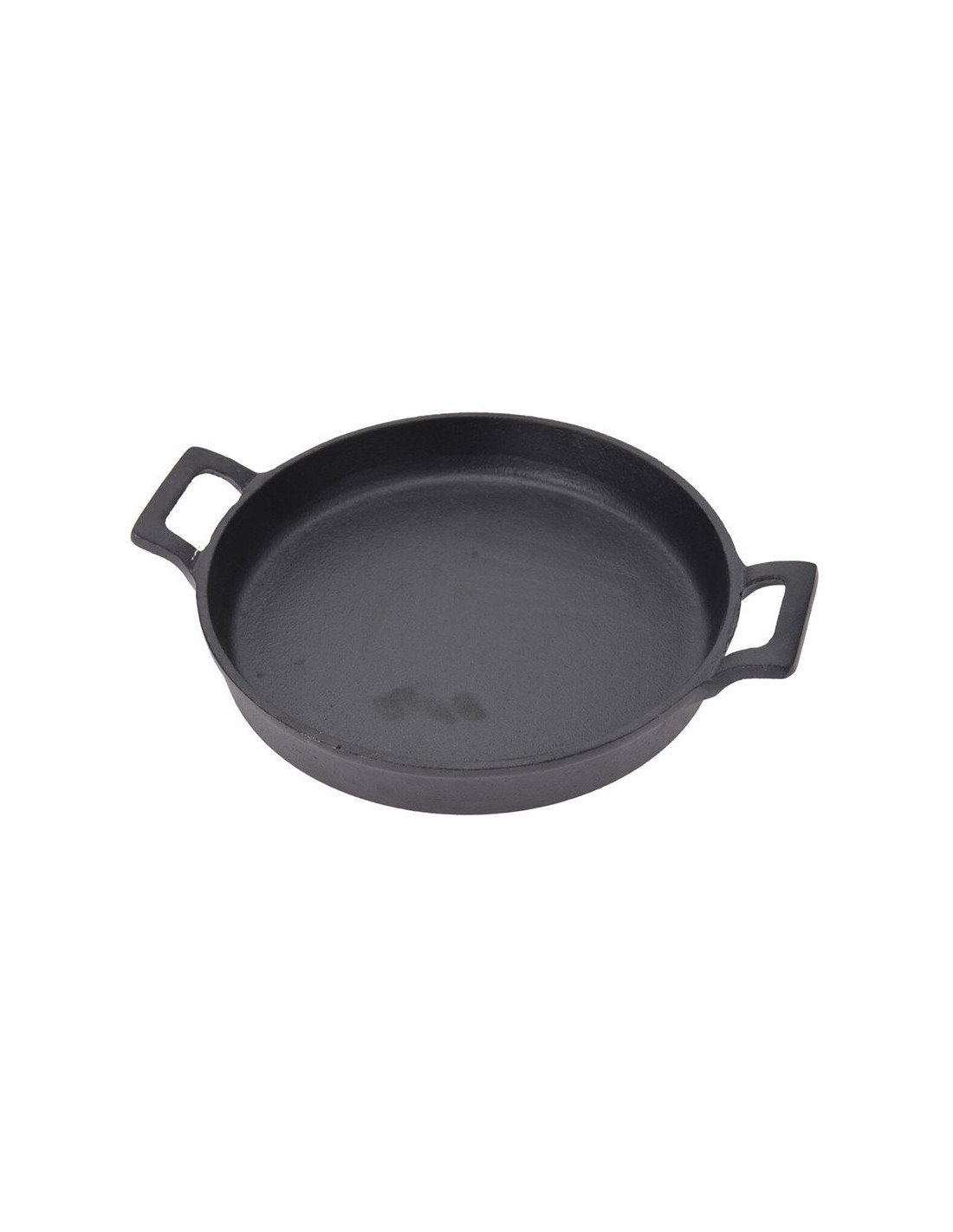 afmeting pannetje: Ø20 x H4,5 cm lengte inclusief handvatten: 25 cm materiaal: gietijzer gewicht: 805 gram