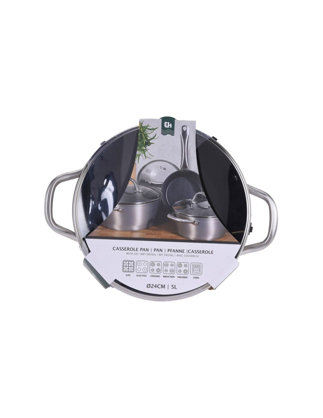 materiaal pan: gesmeed aluminium doorsnede: 24 cm hoogte: 11 cm dikte: 3 mm volume: ca. 3,7 liter gewicht: ca. 1.6 kg inclusief glazen deksel geschikt voor: gas, elektrisch, keramisch, inductie, halogeen vaatwasserbestendig PFOA vrij non-stick, keramische coating voor het eerste gebruik: kook water in de pan, afspoelen met schoon water en drogen