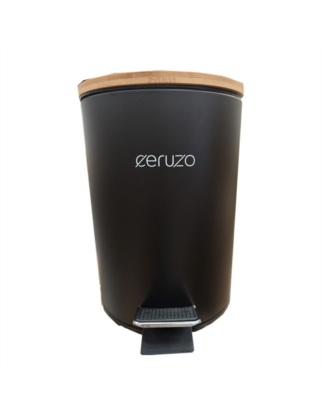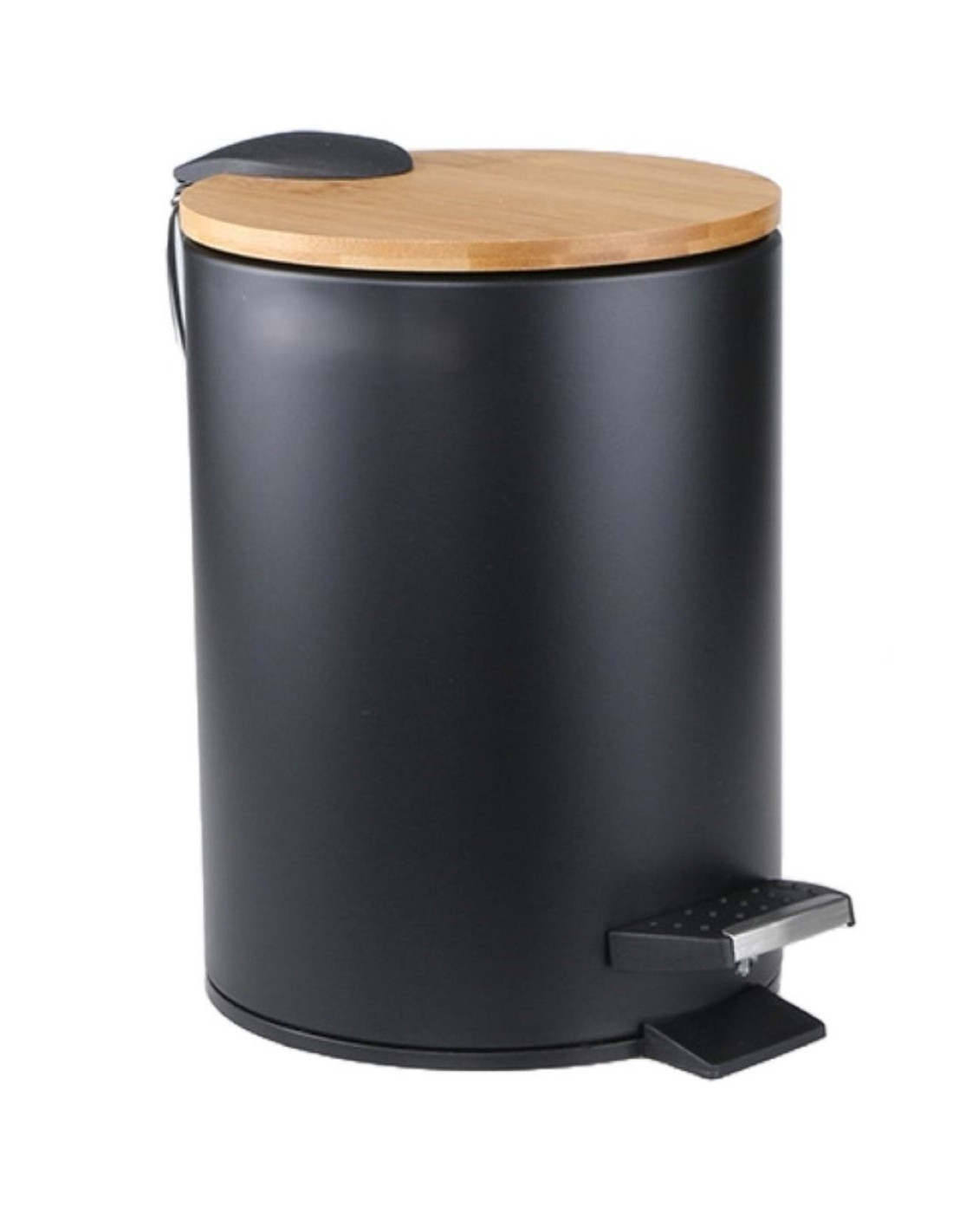 soft close deksel met voetpedaal uitneembare binnenemmer bamboe deksel met handgreep aan de achterkant diameter: 17 cm hoogte: 24.5 cm inhoud: 3 liter kleur: mat zwart merk: Ceruzo