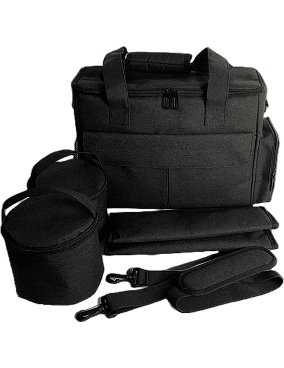 ruime reistas met vele opbergmogelijkheden: 2x opbergvak met klittenband aan de voorkant 1x insteekvak aan de achterkant 1x mesh-insteekvak aan de achterkant 2x opbergvak met ritssluiting aan de zijkant 1x mesh-insteekvak aan de zijkant 1x mesh-opbergvak met ritssluiting aan de binnenkant 2x thermo - voedselcontainers van 15x15x15 cm 1x thermo plaid uitneembaar tussenschot afneembare verstelbare schouderriem afmeting reistas: 37 x 15 x H30 cm materiaal: 600D Oxford kleur: zwart gewicht: ca. 870 gram merk: Ceruzo