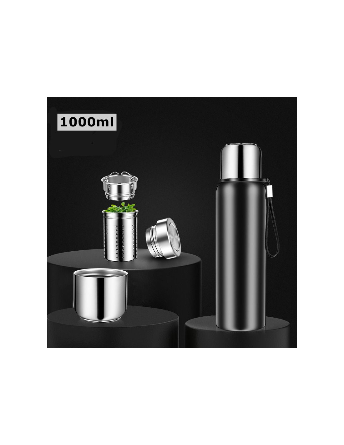 grote luxe isoleerfles voor koffie, thee, smoothies, soep enz. temperatuurscherm dubbelwandig roestvrijstaal inhoud: 1 liter, 1000ml kleur: zwart koud tot 36 uur warm tot 24 uur antislip de filter zorgt ervoor dat er restjes van je thee of smoothie in de fles achterblijven lichtgewicht: ca. 450 gram hoogte: 30.5 cm diameter: 7.8 cm merk: Ceruzo