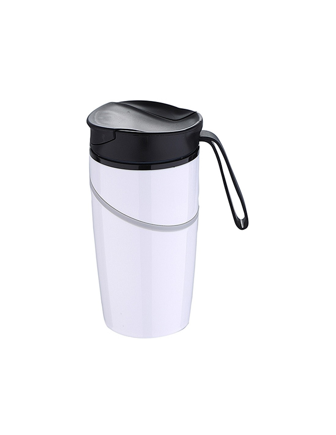 - Isolerend dubbelwandige reismok: binnenbeker is van RVS, de buitenkant van witte kunststof