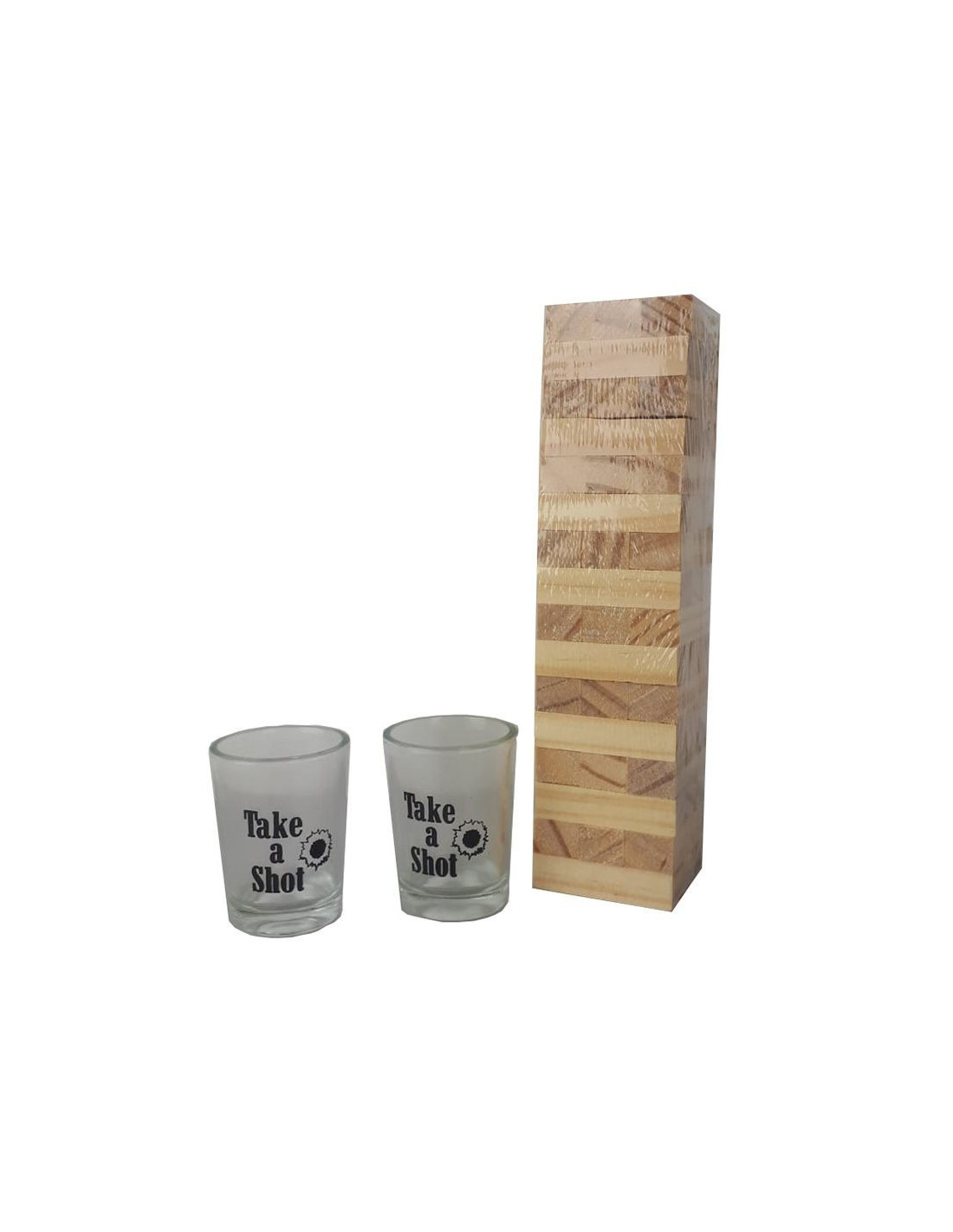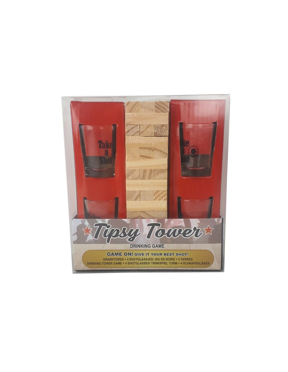 Tipsy Tower is een leuk waarbij de speler die aan de beurt is een houten blokje uit de toren haalt en deze er vervolgens bovenop moet leggen. Zo ontstaat een steeds hogere en instabielere toren. De speler die de toren om laat vallen heeft verloren en neemt een shotje. dranktoren (48 delig) 4 shotglaasjes hoogte van de toren: 15 cm
