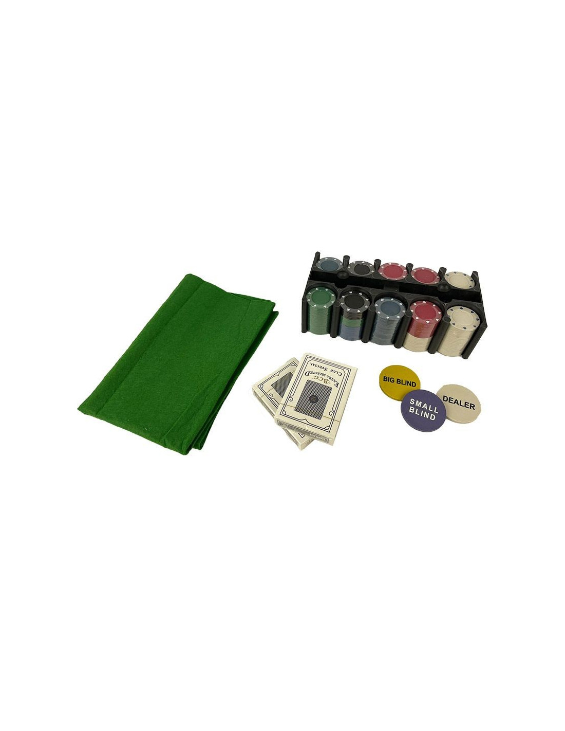 Pokerset 200 pokerchips - inclusief kaarten, pokermat en dealer, big blind en small blind