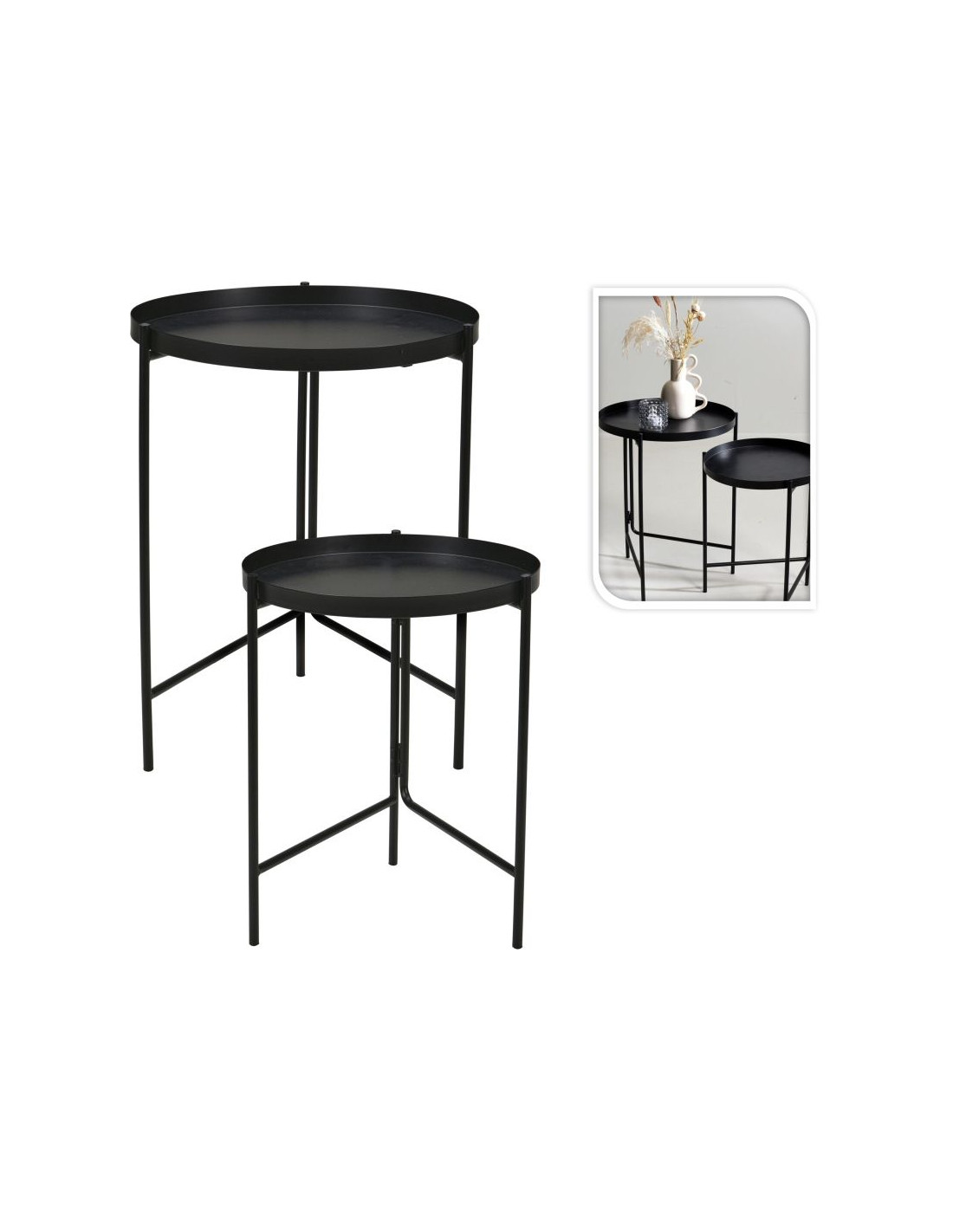 Ontdek onze stijlvolle set van 2 zwarte bijzettafels, perfect voor elk interieur. Met hoogwaardig metaal en tijdloze zwarte afwerking. Functioneel en elegant. Voeg een vleugje stijl toe aan uw ruimte!