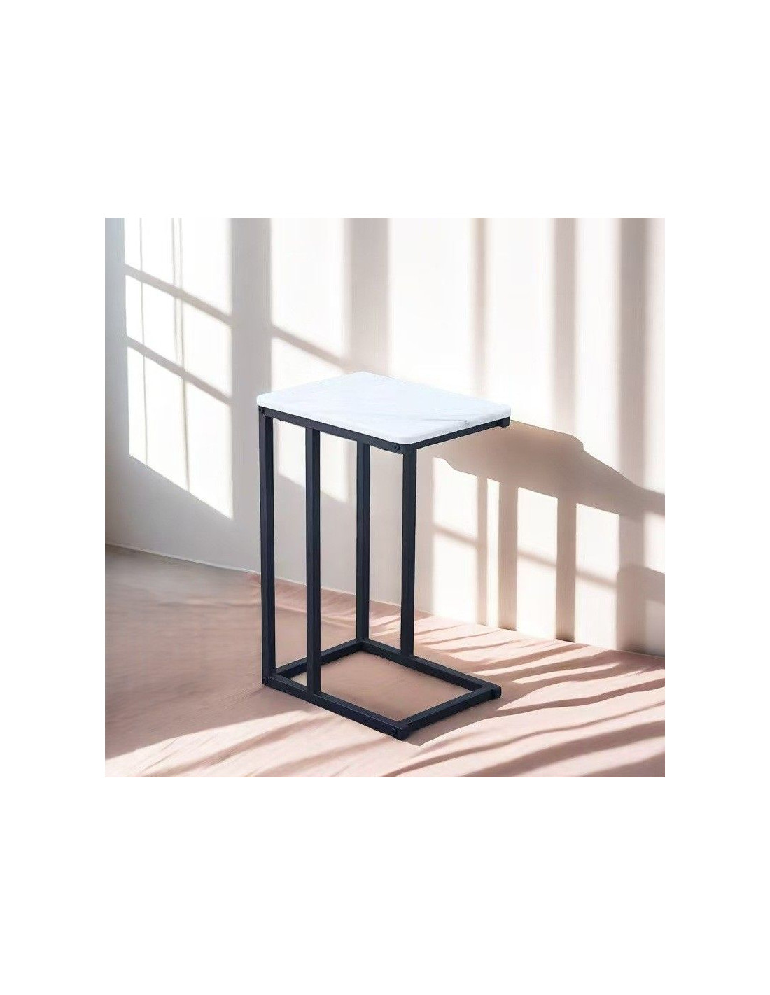Ceruzo Bijzettafel - Banktafeltje - Metaal en MDF - Wit Gemarmerd
